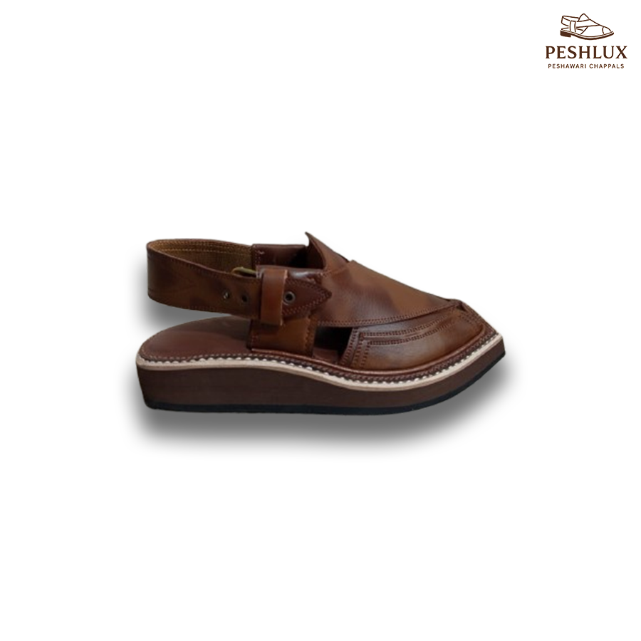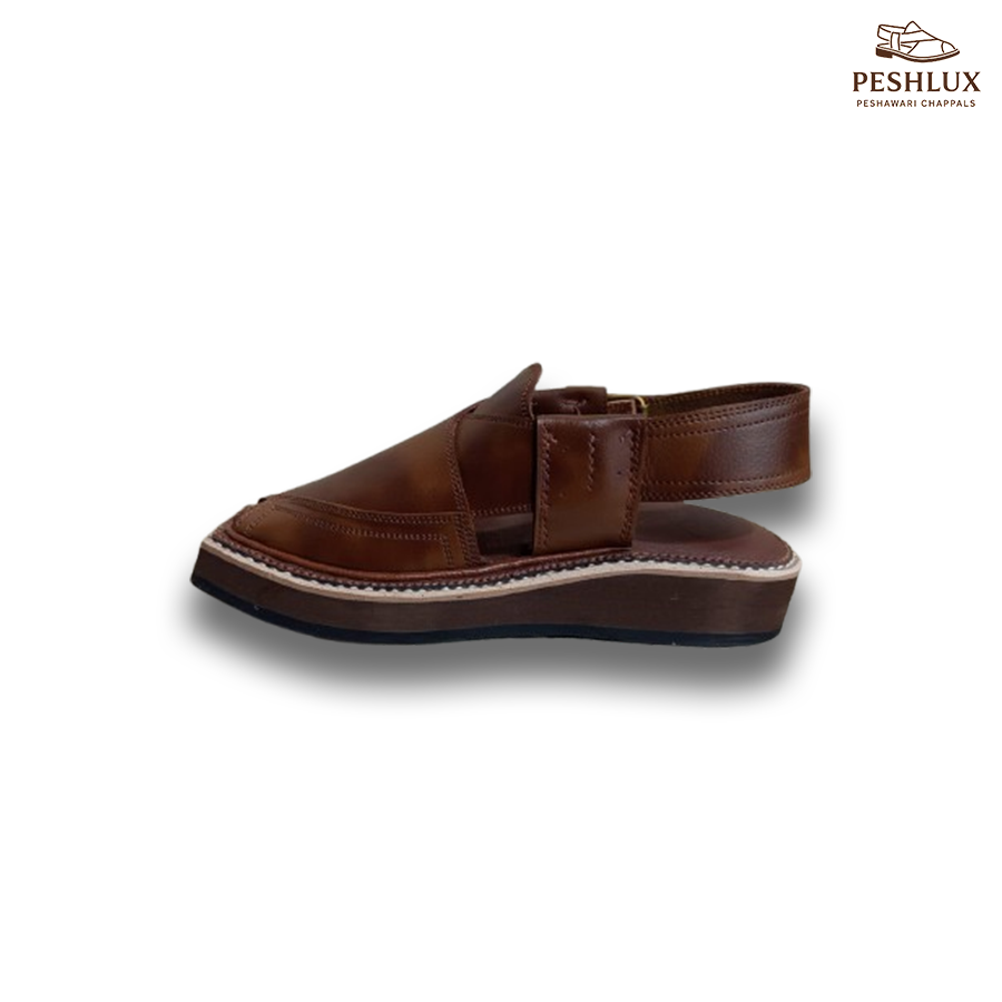 Inspired by heritage, designed for today. The Kaptan Legacy™ Chappal in double shade leather brings together traditional Peshawari craftsmanship and modern elegance. Handcrafted with precision, this chappal features a dual-tone leather upper, offering a bold and refined look. Its robust build and cushioned inner sole make it ideal for both formal and casual wear.